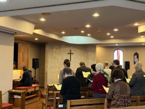 続けて12月13日(土)に大阪聖パウロ教会の礼拝堂にて関西事務局感謝記念礼拝を執りおこないました。これまで関西での活動に尽力してくださった方々が集まり、齊藤壹司祭(日本聖公会大阪教区)による「愛、ますます豊かに」と題した力強いメッセージを伺いました。礼拝後には茶話会を開催しました。出席者の皆様は、これまでの関西事務局の歩みを振り返り、そして今後の活動についての思いを述べられました。